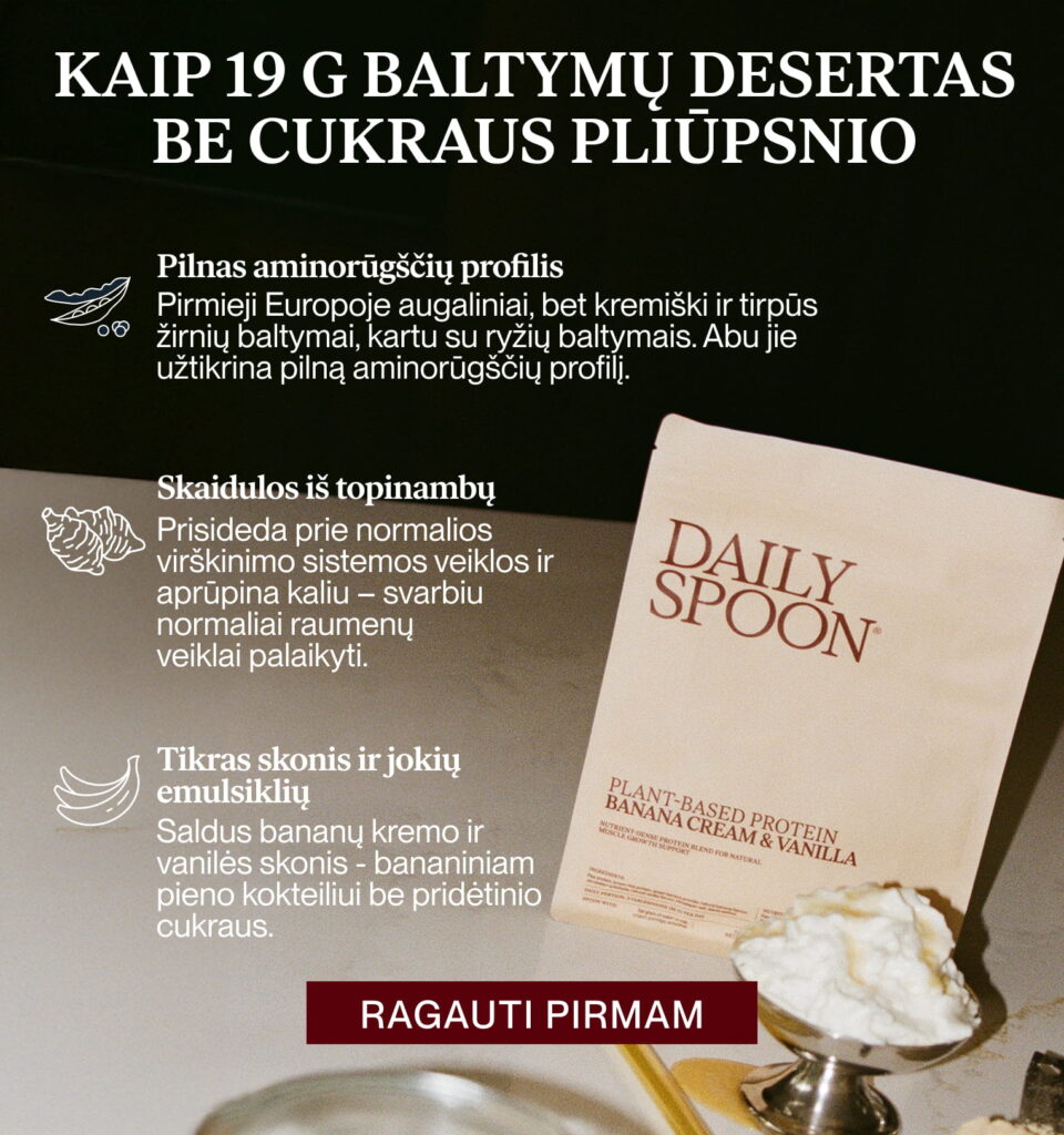 Ilgą laiką pati galvojau, kad smaližiavimas – mano silpna vieta. Tik vėliau supratau, kad dažniausiai man tiesiog trūkdavo sotumo dienoje. Kai sukūrėme paprastą ritualą – kremišką baltymų kokteilį, viskas tapo daug paprasčiau. Šįkart – desertiškiausio skonio iki šiol.