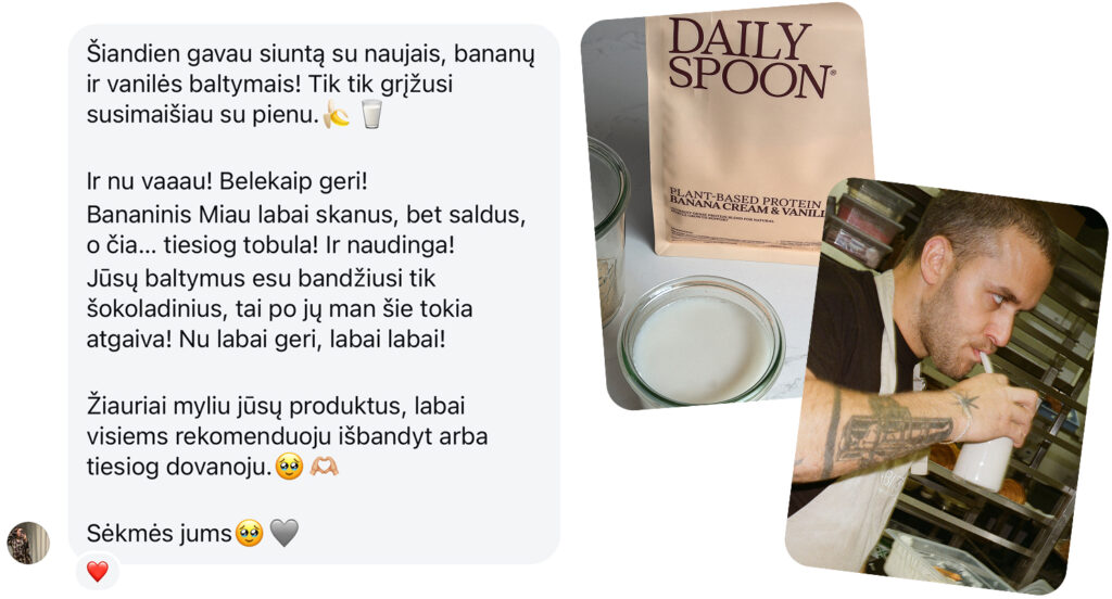 Be to, šie baltymai skiriasi ne tik skoniu. Įprastai baltymus papildome adaptogenais, tačiau šiems susikoncentravome į gausesnį baltymų kiekį ir gerą skonį. Tokiu būdu juos galima drąsiau naudoti turint įvairius mitybos ribojimus. Aš kaip pati maitinti mama – juos naudoju be rūpesčio.