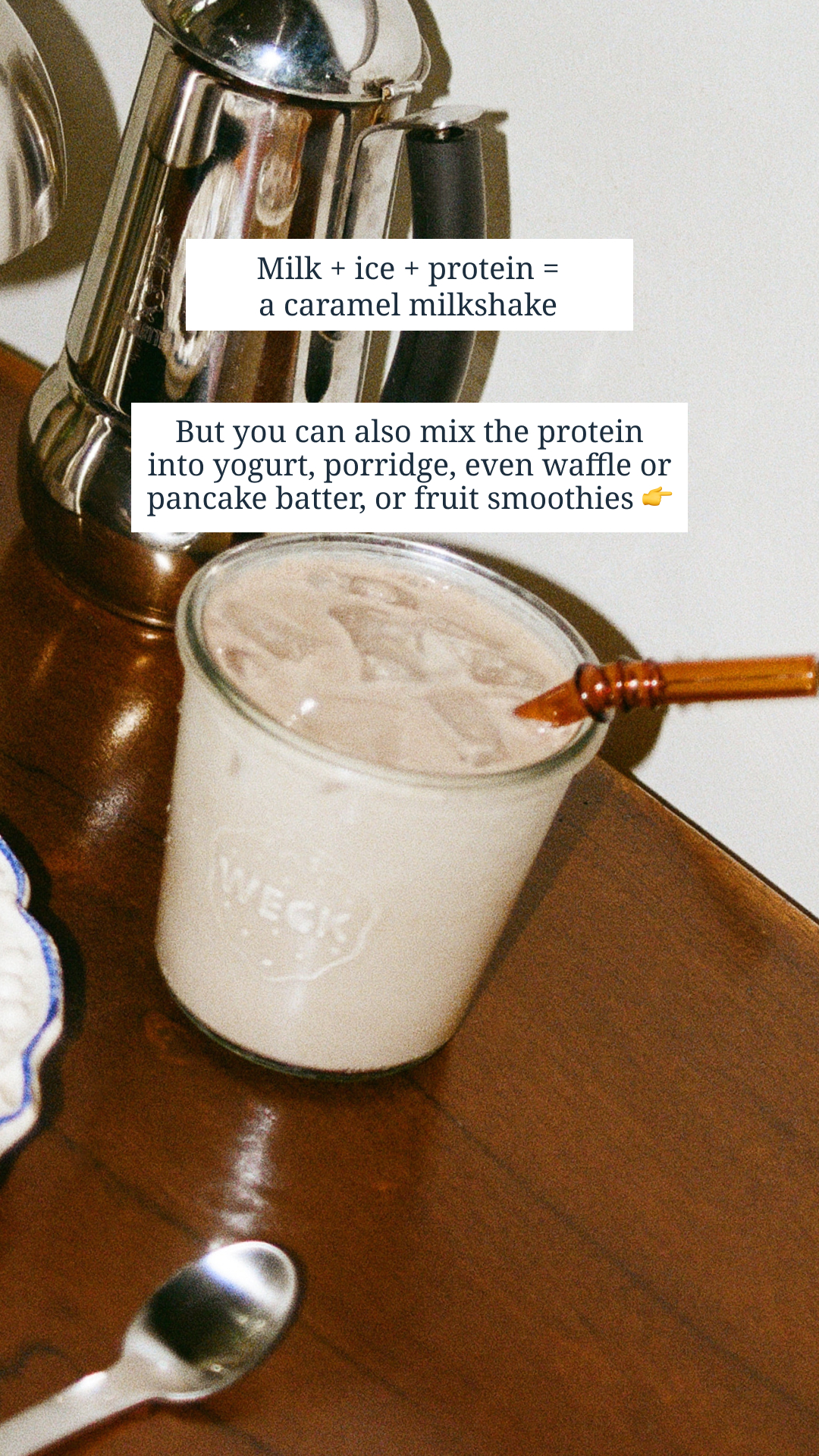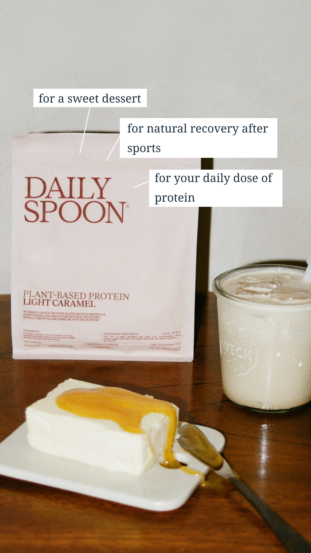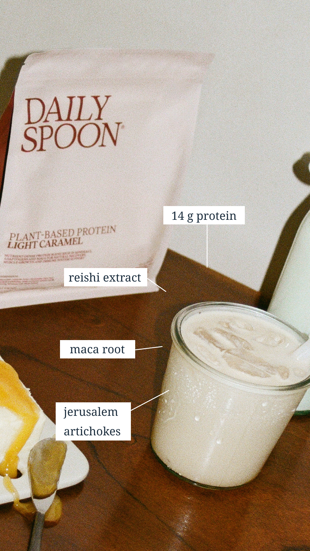 A plant-base, nutrient-dense protein blend with a smooth caramel flavor, packed with minerals, adaptogens, and maca.