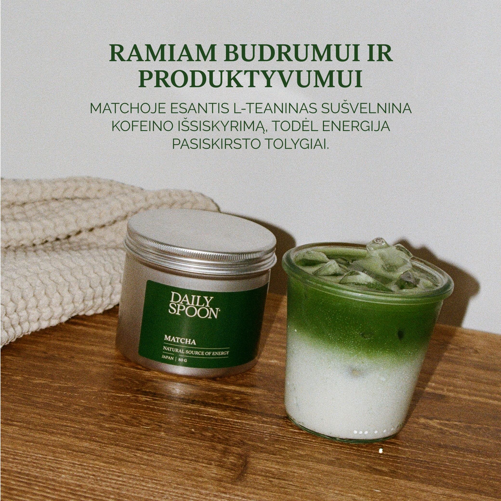 Not only does matcha provide sustained energy without sudden crashes, but its L-theanine also enhances concentration, making it easier to stay focused and productive throughout the day. Supported by the adaptogen Lion’s Mane, known as “brain food,” it helps clear brain fog, being ideal for those who work and study.