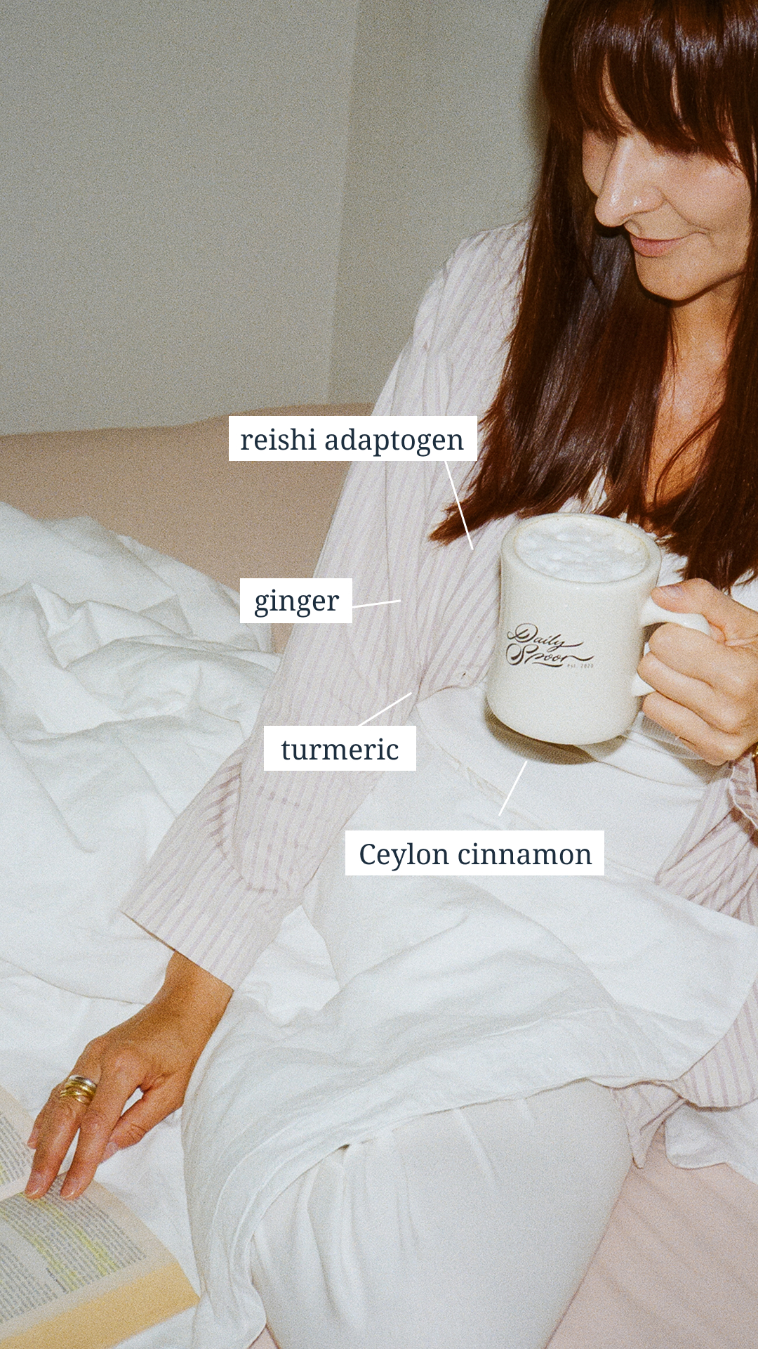 This blend brings together a handful of immune-supporting ingredients in a single comforting cup of latte – including ginger, turmeric, and reishi mushroom, cherished for centuries for its calming properties and immune benefits.