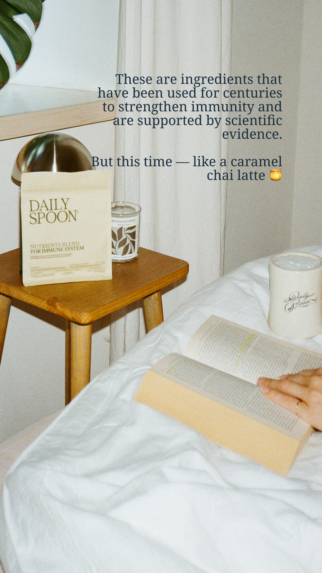 Carefully selected not only for their support of immunity, these ingredients also help you create a warming, caramel-infused chai latte that feels like a hug from the inside out.