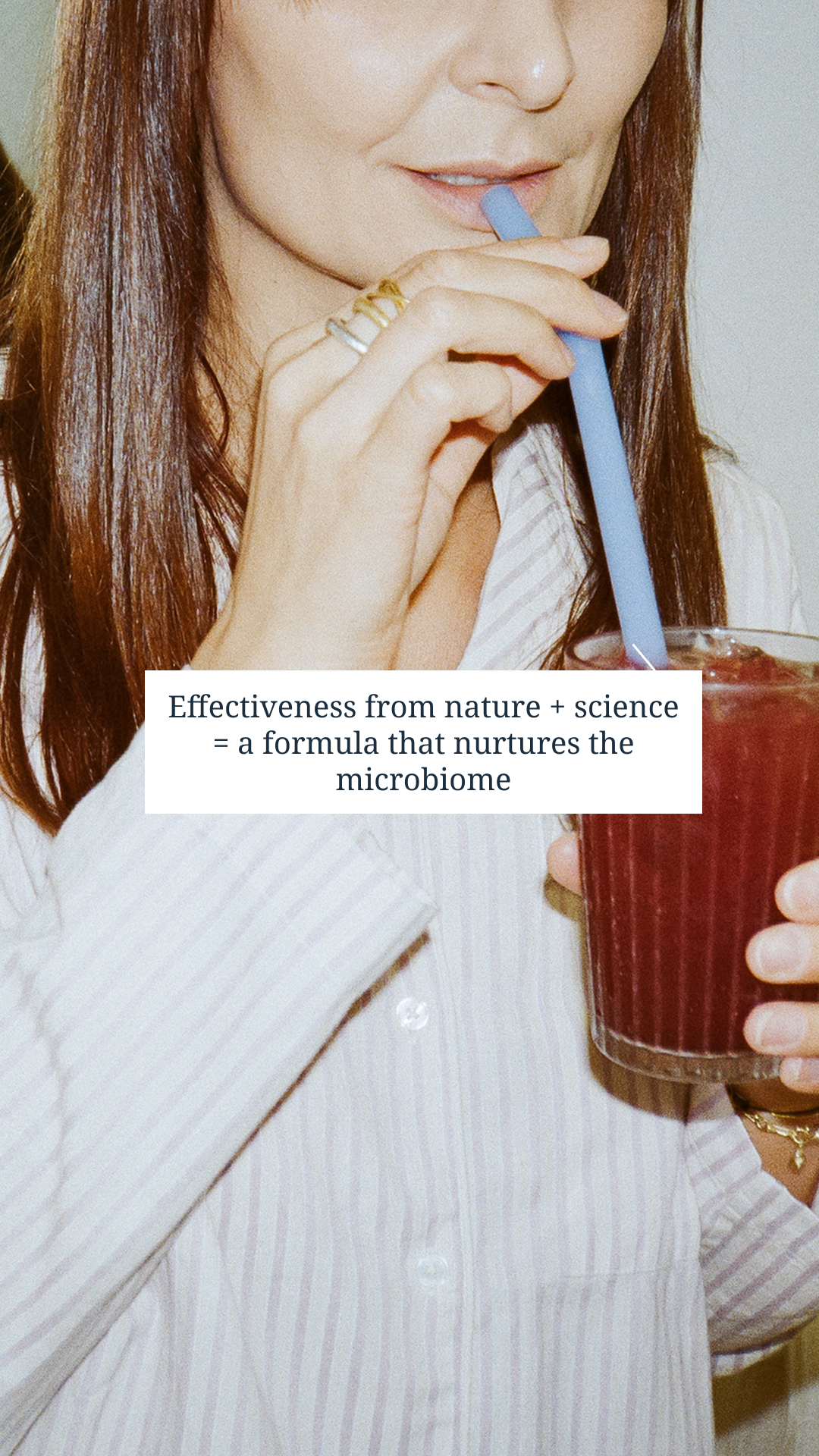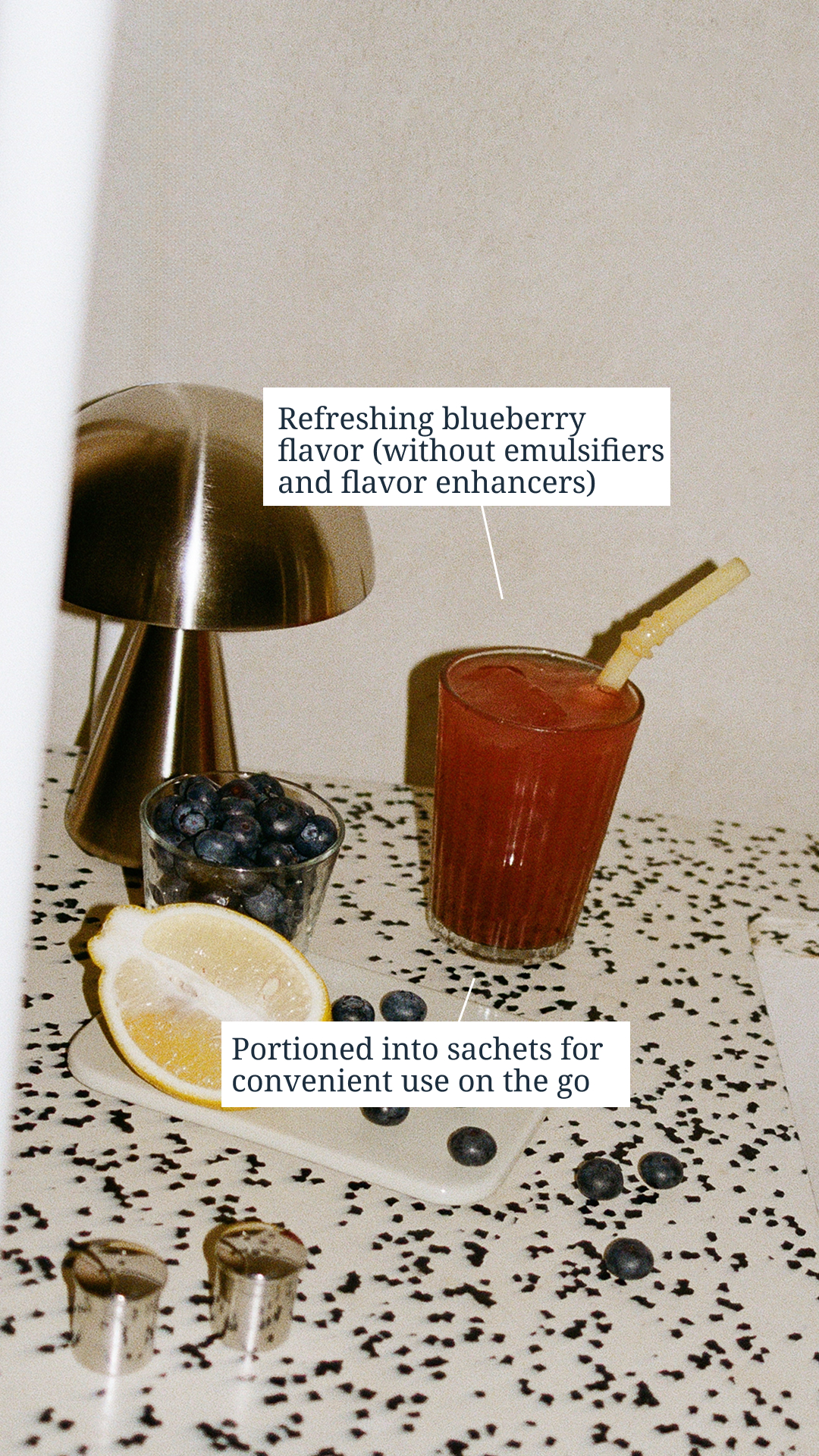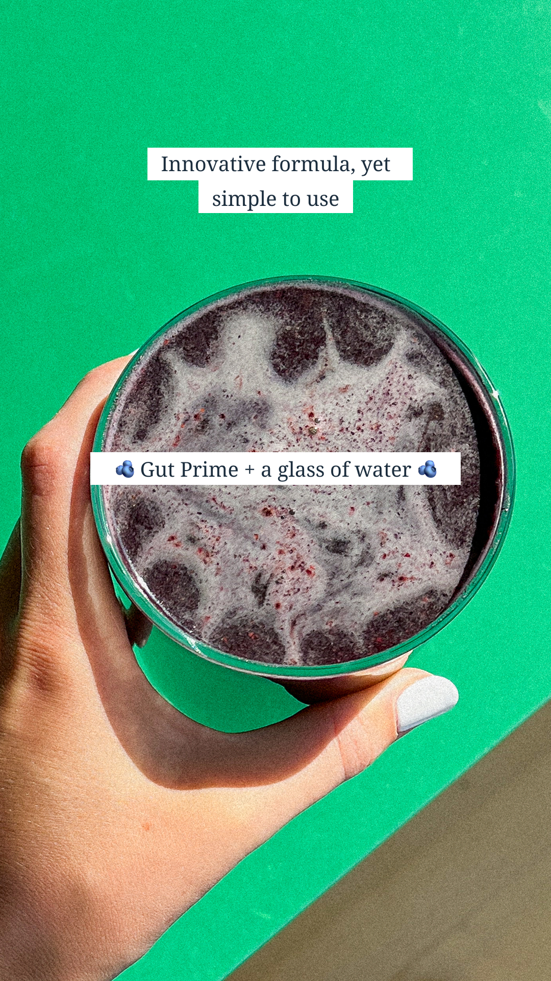 A blueberry-flavored daily ritual, enriched with live bacteria and active ingredients to nourish your gut and skin from within.