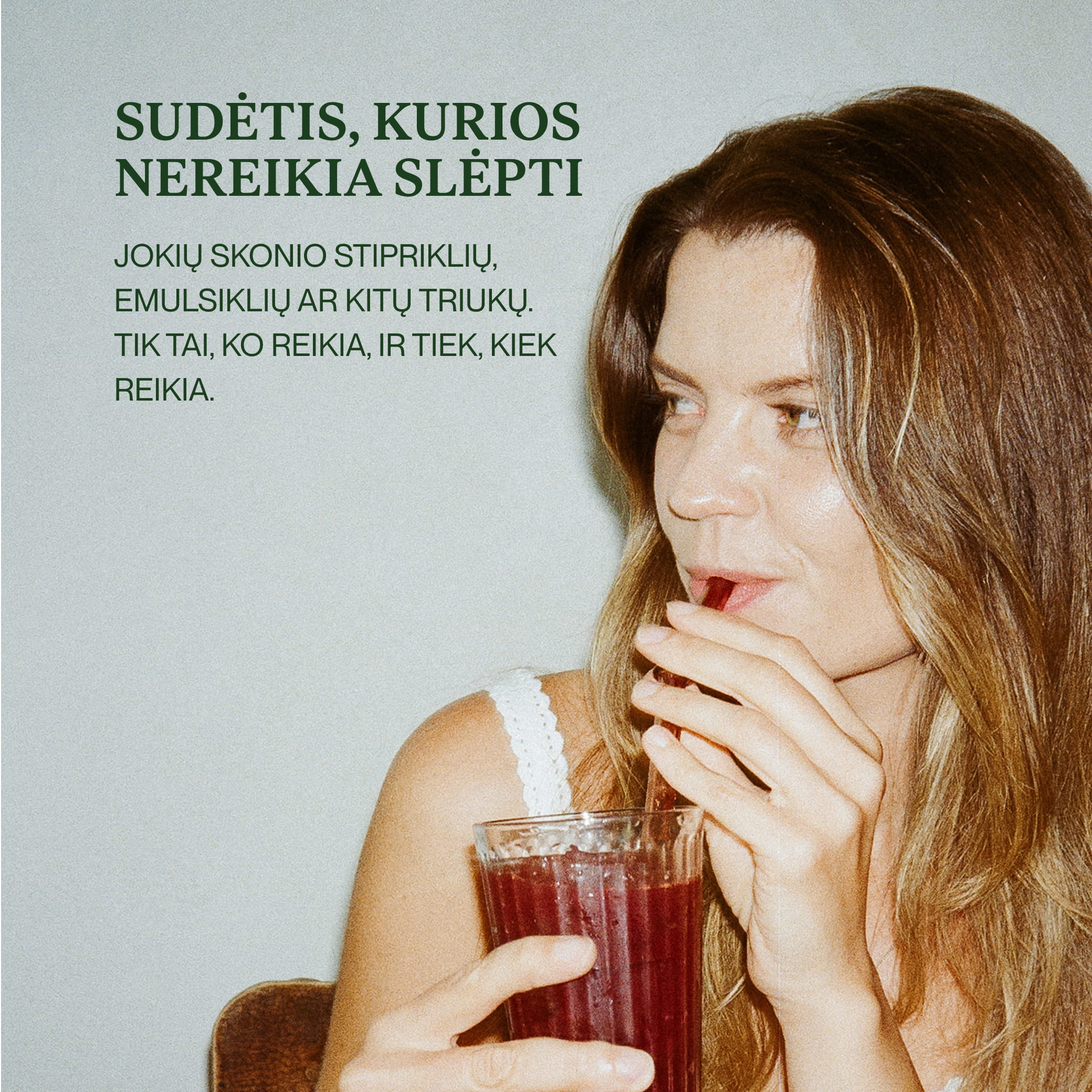 Use the rituals regularly, one serving per day. Take them after a meal — swallow 2 Glow capsules with a glass (200 ml) of water. Gut Prime and Hair are also mixed with a glass of water, creating refreshing berry-flavoured lemonades.