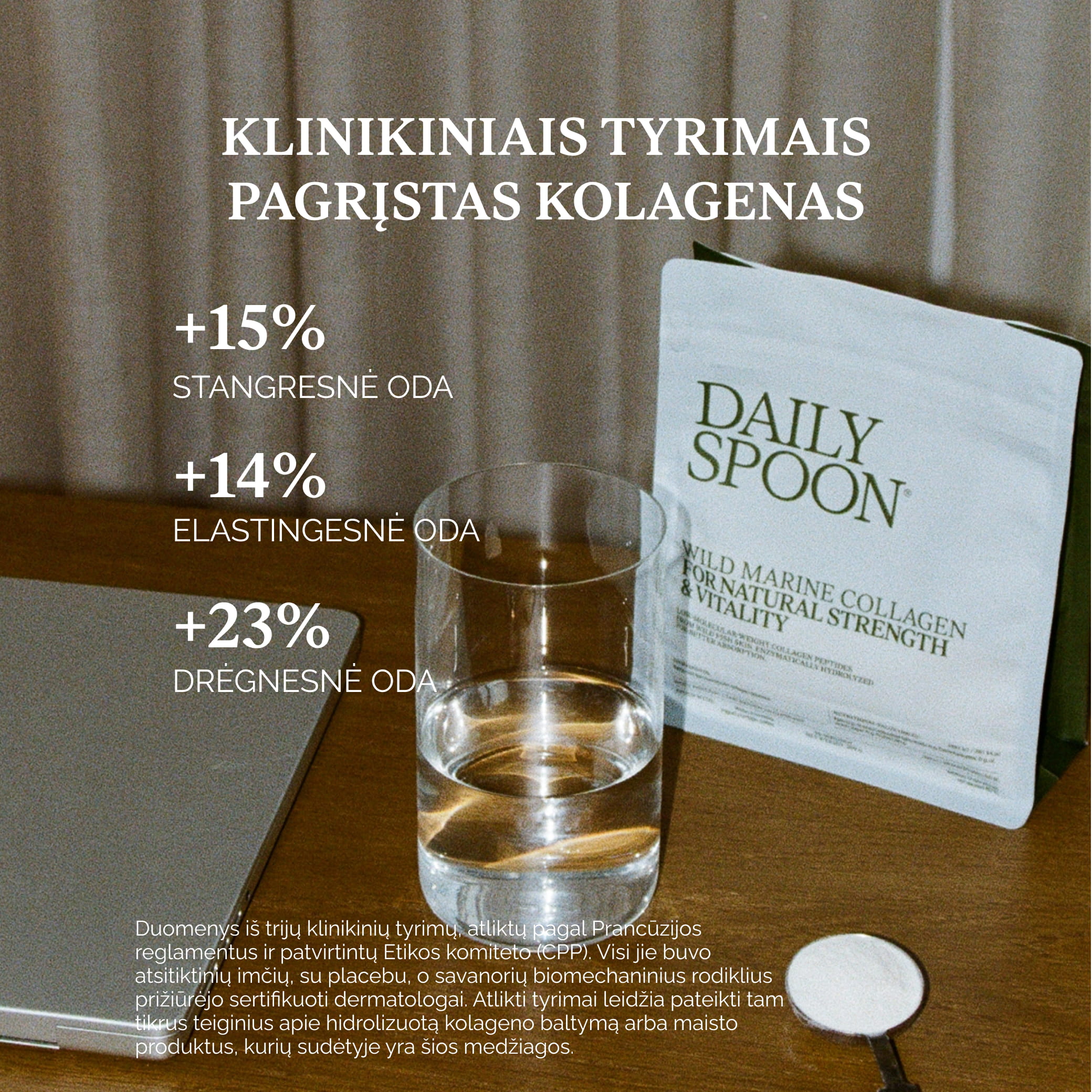 Finally, we completed the routine with collagen. Collagen is most often associated with the structure of the skin, tendons, and bones, yet many collagen supplements on the market are difficult to absorb, lack clear origin, or have a strong marine taste. Ours has a neutral flavour, low molecular weight for better absorption, and is sourced from fish that grow in their natural environment without additional feed, hormones, or antibiotics. It is certified by Friend of the Sea and MSC (Marine Stewardship Council), organizations that ensure responsible fishing and sustainable use of marine resources.
