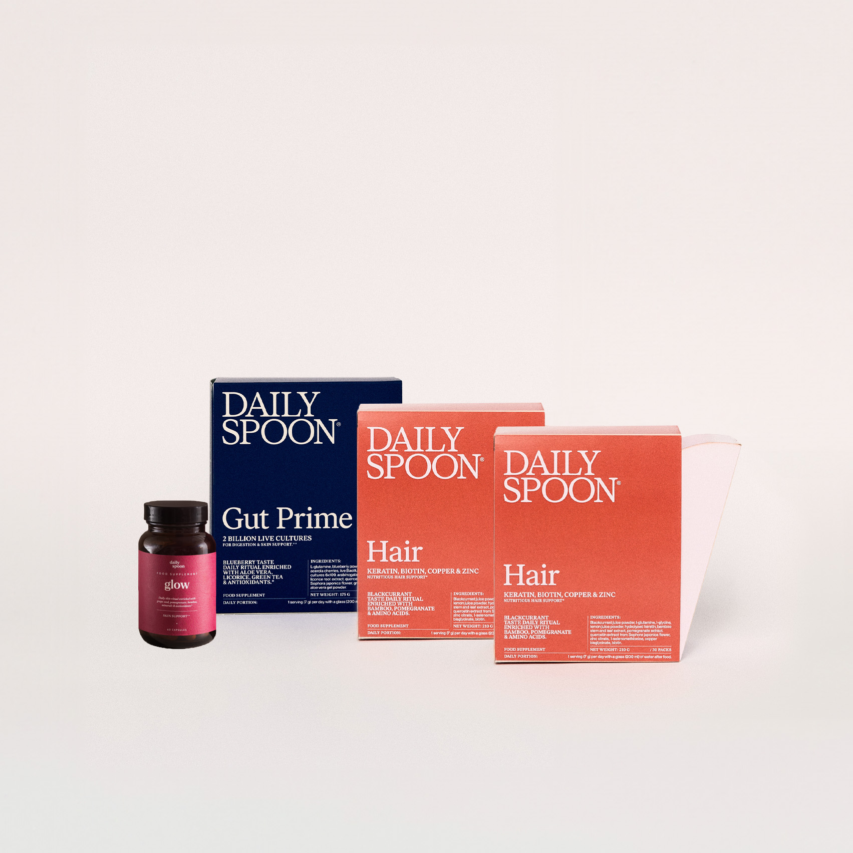 Use the rituals regularly, one serving per day. Use after food - 2 capsules of Glow with a glass (200 ml) of water, while Gut prime and Hair also only need a glass of water each for a refreshing berry lemonade.