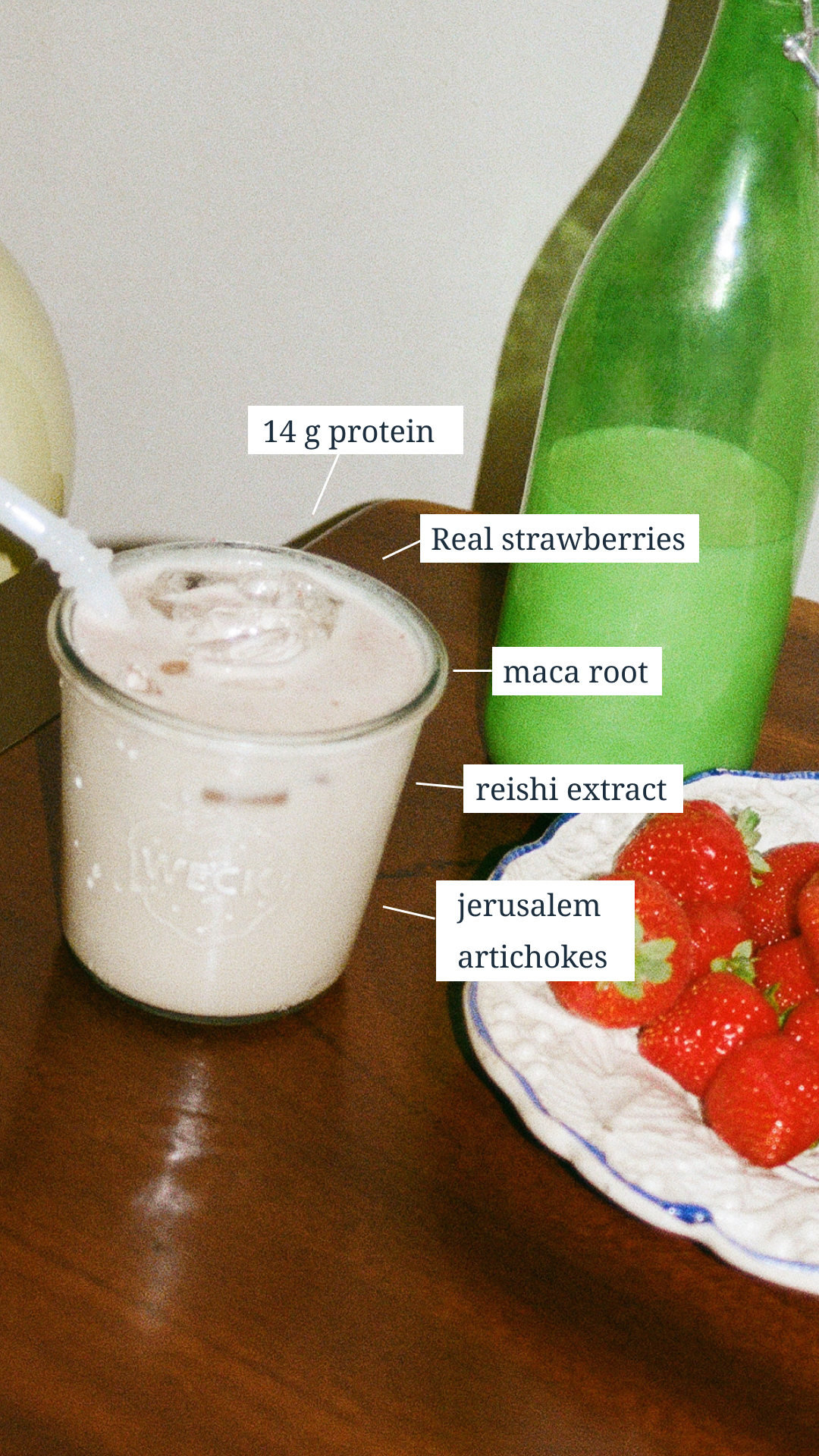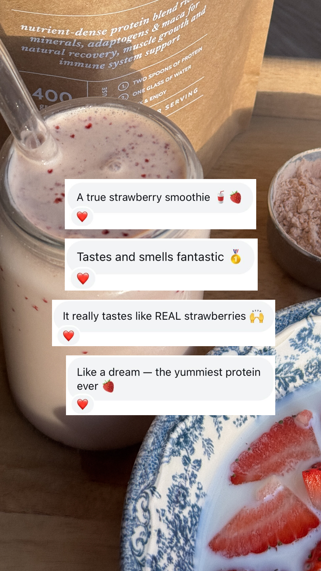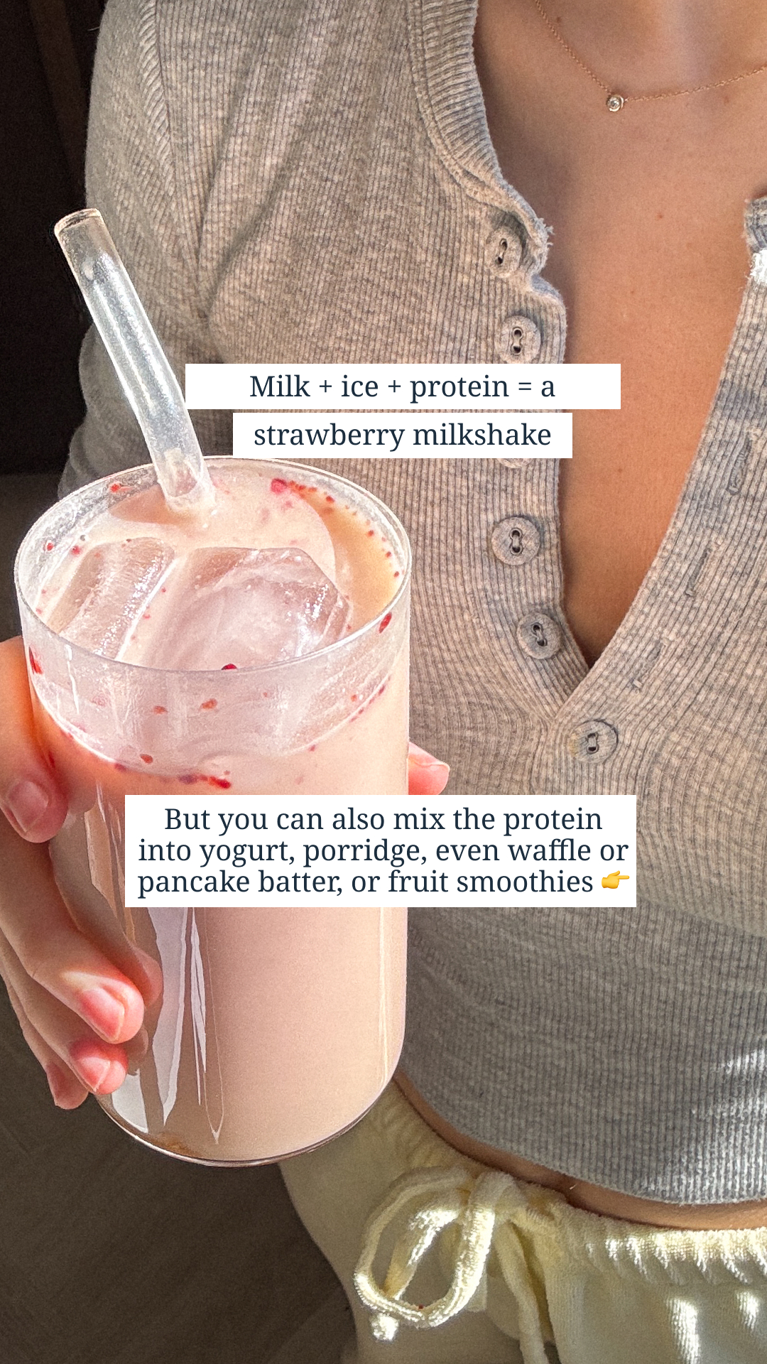 Real strawberries give the protein blend a naturally sweet and mild flavor. That’s strawberry milkshake for the active.
