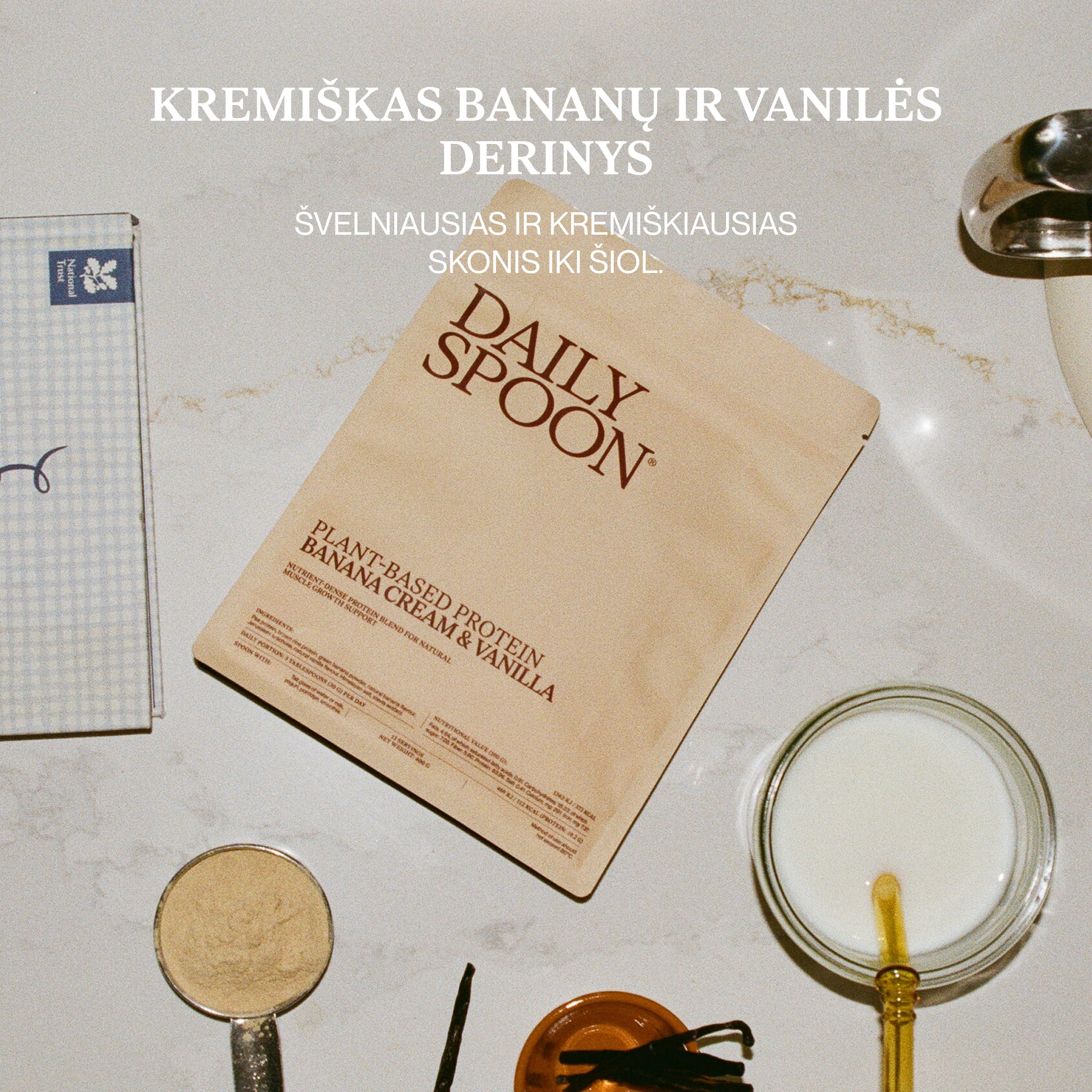O bananų ir vanilės baltymuose esantys tikri bananai suteikia jiems švelnų ir natūraliai saldų skonį.