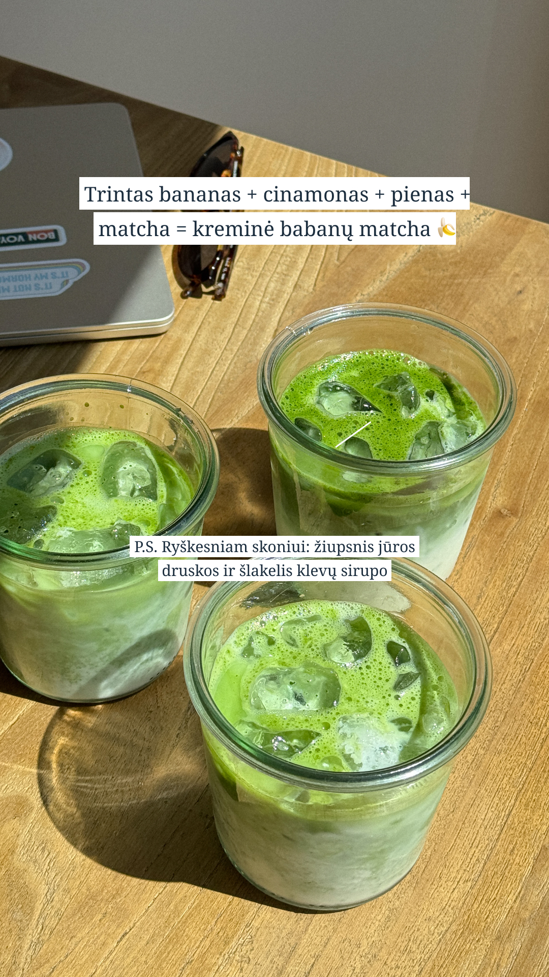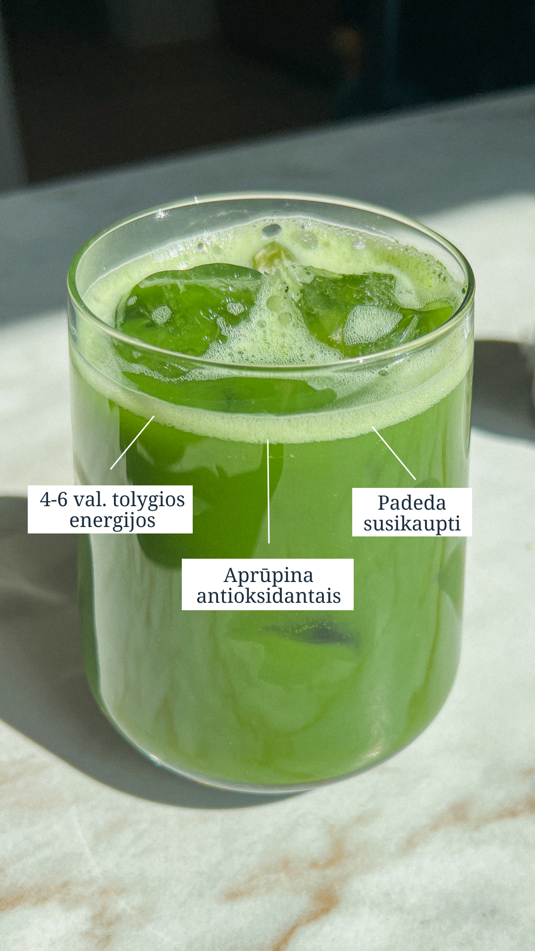 Jau keletą metų mylimas gėrimas, turintis antioksidantų ir kofeino, kuris veikia tolygiai, be energijos kritimo. Pastebėjau, kad matcha man padeda susikaupti.