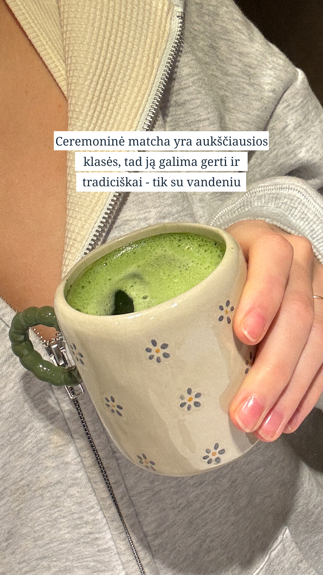 Nors su ceremonine matcha galima pasigaminti ir matcha latte, pienas dažnai užmaskuoja jos autentišką skonį, todėl rekomenduojame ja mėgautis tradiciniu būdu. Jei matchą mėgstate naudoti su pienu, kokteiliais ar dėti į desertus, tam siūlome rinktis klasikinę matchą.