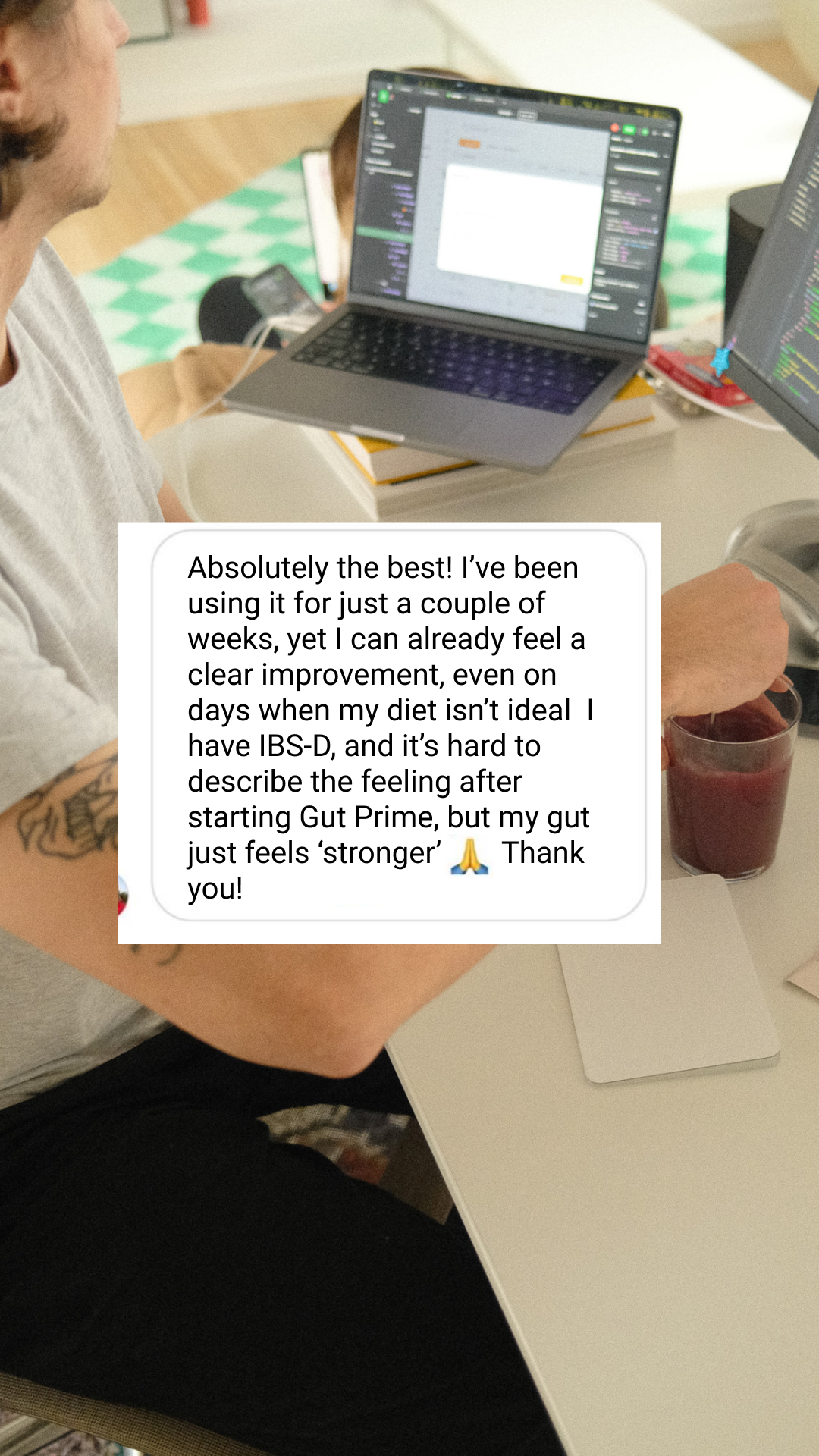 Garantuojame aukščiausią ingredientų kokybę ir biochemijos mokslų daktarės žinias kuriant šį produktą – atrinkome ingredientus žarnyno mikrobiotos sveikatai, tačiau svarbu atsižvelgti į visus mūsų organizmo sveikatai įtaką darančius veiksnius, kaip mityba, miegas ar stresas.