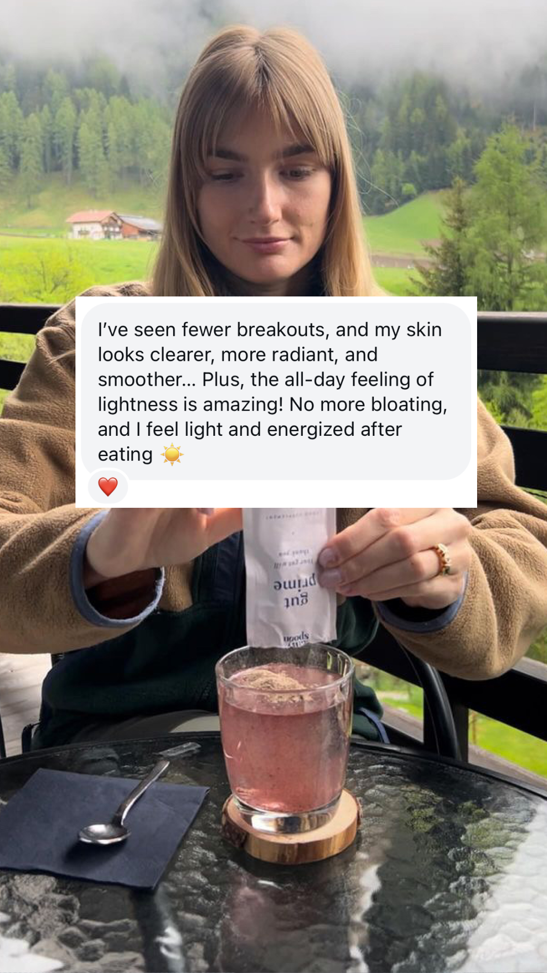 Gut Prime yra kaip pagrindas mikrobiotos klestėjimui. Jame yra aktyvesni ingredientai, kaip gyvosios bakterijos ir ekstraktai, kurie puoselėja žarnyną ir tuo pačiu odos švytėjimą.