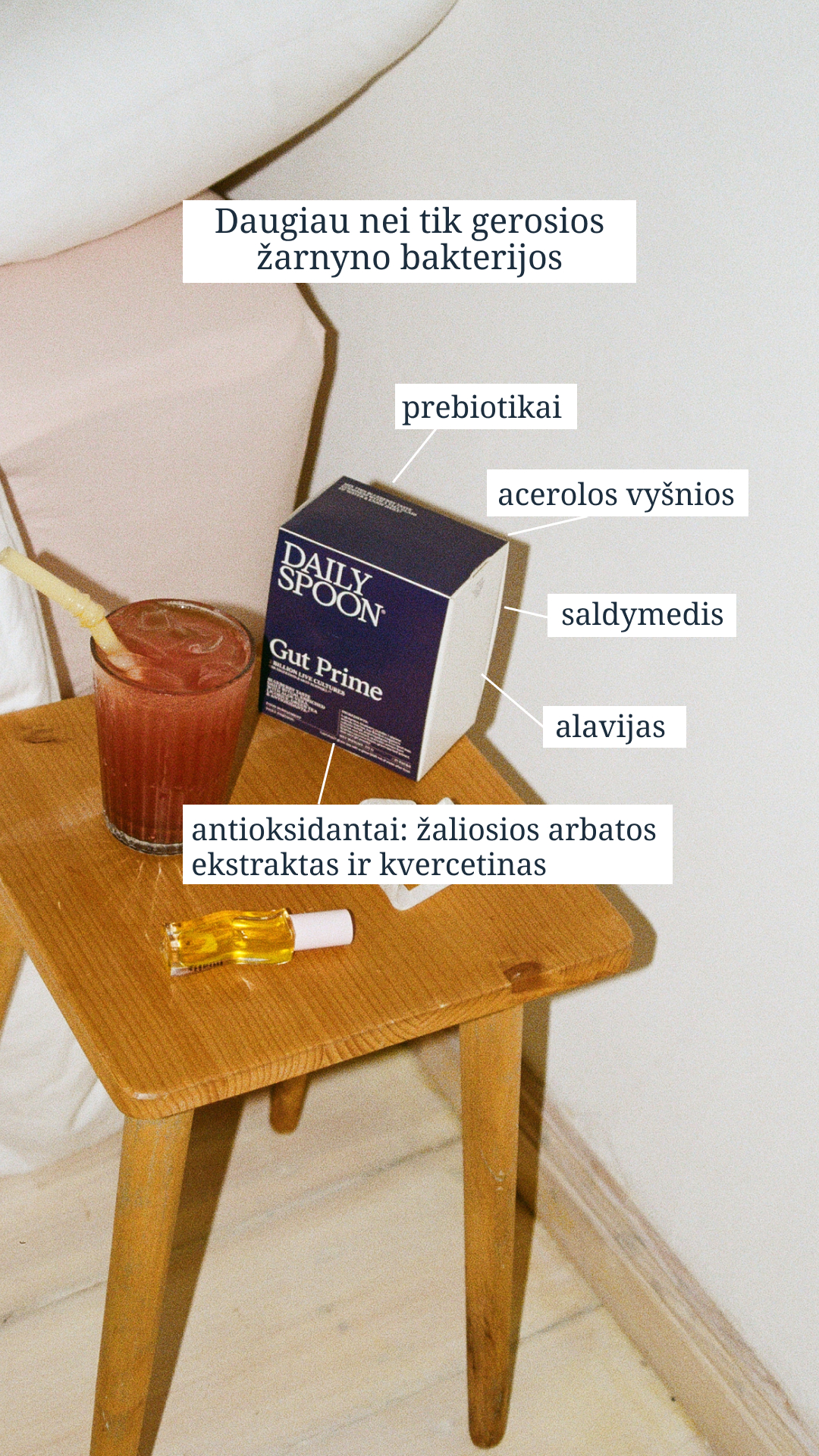 Mėlynių skonio maisto papildas Gut prime padės tvirtą pagrindą mikrobiotos klestėjimui. Jame esantys aktyvesni ingredientai, kaip gyvosios bakterijos ir ekstraktai, puoselės žarnyną ir tuo pačiu odos švytėjimą.
