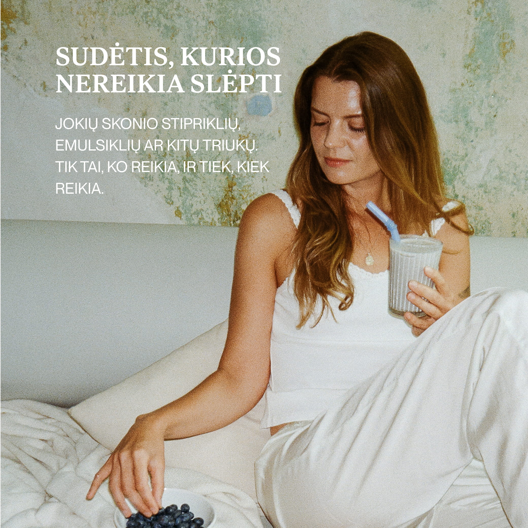 Mišinys Balansui skirtas padėti puoselėti hormonus iš vidaus ir sušvelninti nuotaikų ir energijos svyravimus. Tai natūrali formulė, praturtinta maca, vitaminu B6, alavijų bei artišokų ekstraktais, o susimaišius su stikline pieno – kaip mėlynių skonio pieno kokteilis.